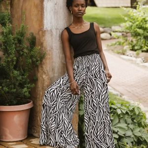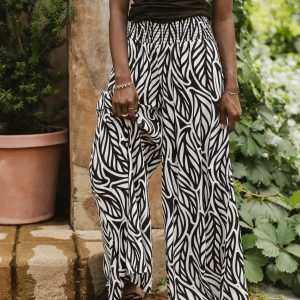 Petra Abstract Smocked Pants in Black - FINAL SALE